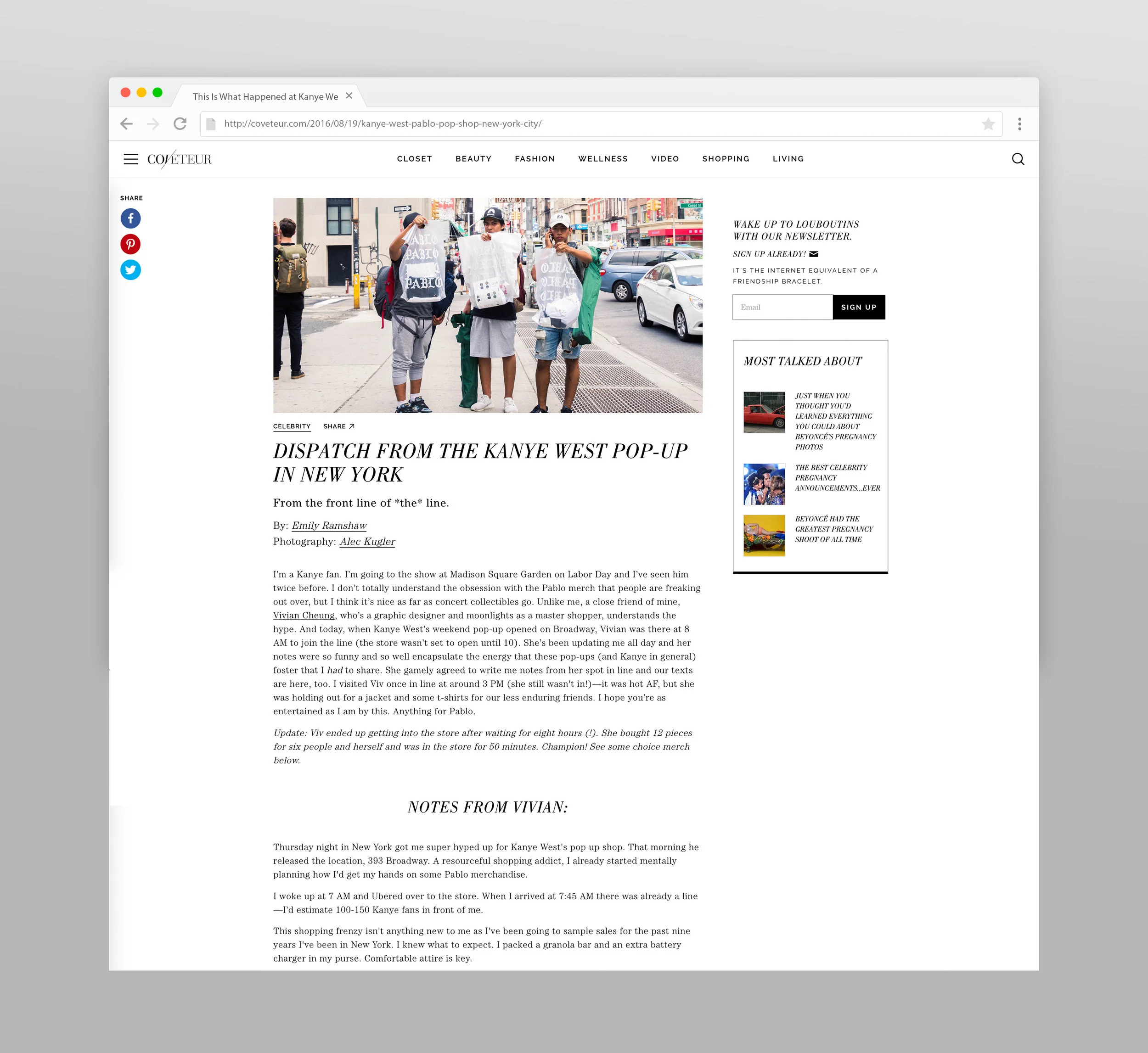 What is was like standing in line for Kanye West's pop-up shop in NY. Read the article here: http://www.thecoveteur.com/2016/08/19/kanye-west-pablo-pop-shop-new-york-city/